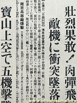 南昌空爆に出撃した海軍第十三航空隊の三等航空兵曹の樫村寛一が操縦する九六式艦上戦闘機が、中国軍機と空中衝突し、左翼の2分の一を失いつつも、600キロを片翼飛行し無事上海に帰還します。