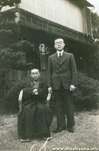 昭和15年〜16年に撮影されたと思われる、着物姿の写真がありました。 後ろ左に伯父が写りますが、右端は同じ外語大学フランス語科の同級生です。 何方かのお宅の庭のようですが、芝も手入れされ立派な庭で、家屋も昭和初期の雰囲気の家です。